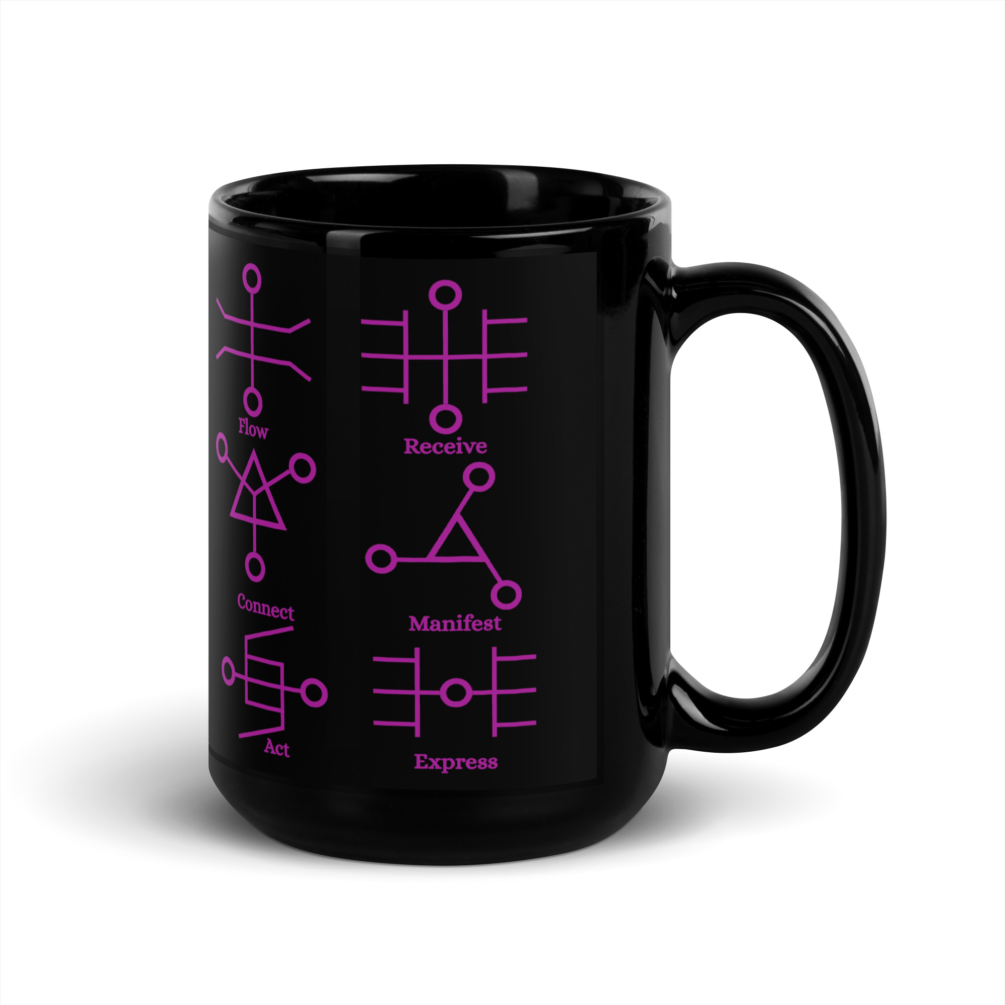 Black Glossy Mug with 15 Sacred Circuitry Glyphs – The Conscious Brew